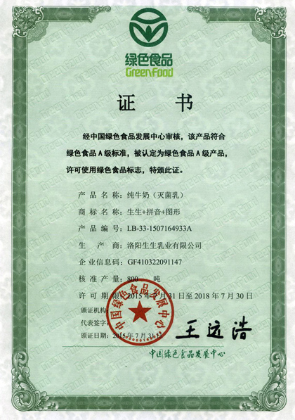 生生乳業(yè)代表河南洛陽展團(tuán)參加在西安舉辦的第十六屆中國(guó)綠色食品博覽會(huì),生生牛奶在展會(huì)上獲得領(lǐng)導(dǎo)的好評(píng)和消費(fèi)者們的贊譽(yù),生生巴氏鮮牛奶榮獲綠博會(huì)金獎(jiǎng)稱號(hào)。
