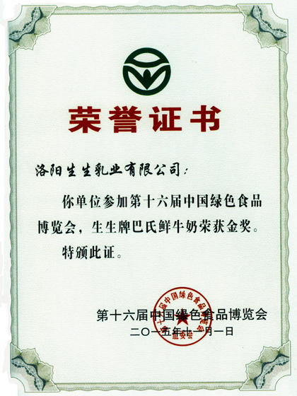 熱烈祝賀“生生巴氏鮮牛奶“榮獲2015年第十六屆中國(guó)綠色食品博覽會(huì)金獎(jiǎng)!