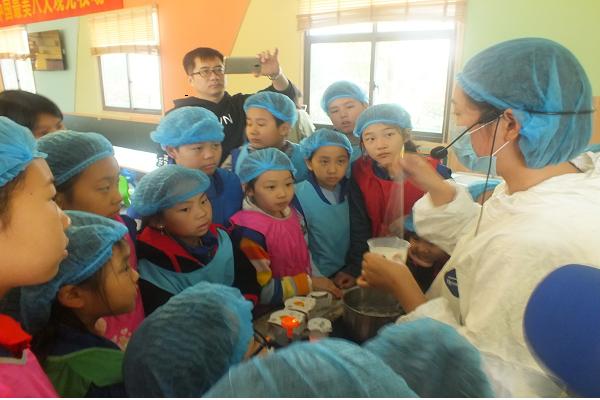 生生牧場工作人員為新華小記者現(xiàn)場教授酸奶制作全過程