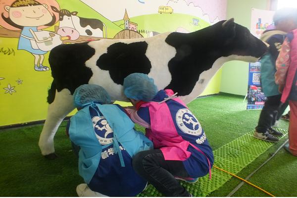 新華小記者模擬擠奶工作