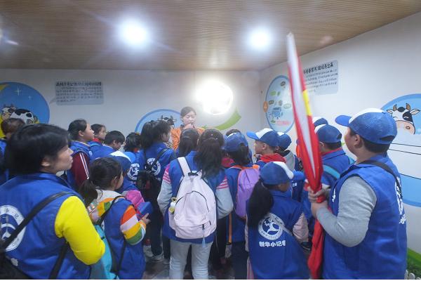 新華小記者在講解員的帶領(lǐng)下參觀擠奶廳
